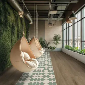 LVT (Luxury Vinyl Tiles) flooring is modular PVC flooring in planks and tiles. Modular PVC flooring is new generation PVC flooring that benefits from the latest technologies for an extremely realistic look that closely resembles the appearance of ceramic tiles and parquet. Our LVT flooring range is suitable for use in offices, hotels, homes and other sectors. Our LVT flooring is available in different sized tiles and planks for quick and easy installation. Our products include flooring that can be glued, interlocked or laid loose during installation. Discover a wide range of Gerflor flooring designs with wood or mineral effects to customize your spaces. PVC Creation flooring tiles and planks have become an essential benchmark in the flooring field with high decorative value. Our floor coverings are easy to maintain. They are certified by independent bodies and have also undergone numerous in-house tests. Gerflor is an eco-friendly manufacturer. We have set up a flooring and manufacturing waste recycling program. All flooring in the LVT range is 100% recyclable.